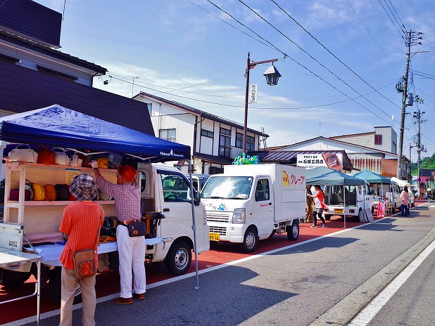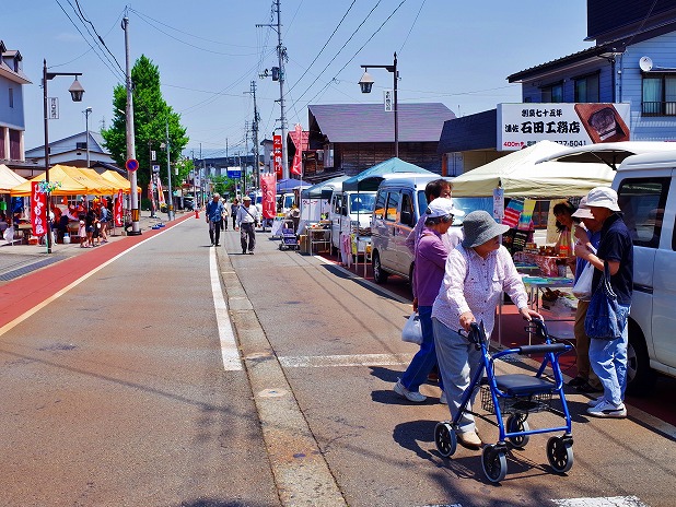 浦佐毘沙門通りでは、今年も8月を除く毎月第4日曜に「びしゃもん市」と「軽トラ市」、そして「ストリート芸能」などの小さなお祭りを開催します。
