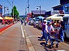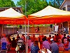 5月の24日は好天にも恵まれ、通りの通行を止めて今年初めての賑わい事業となりました。ストリート芸能には組み立て式の小さな舞台が初登場し、お祭りに使用するテーブル20台と