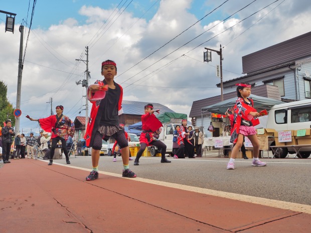 少し荒れ模様の日曜日でしたが、それでも多くの皆様が楽しみにしている 小さな祭り「鮭&きのこ祭り」が開かれました。”びしゃもん市” に ”軽トラ市” 、新たに「よさこいチーム」も加わった ”ストリート芸能” など、盛りだくさんな一日でした。
