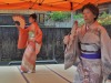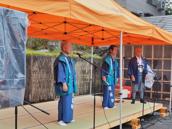 春から毎月第4日曜日に開催された浦佐毘沙門通りの「小さな祭り」は、今期の最終回を迎えました。今回のテーマは ”菊まつり” でしたが、毘沙門堂・普光寺の境内では30回の記念イベントもあって、雨天にあって ”ホコテン” となった通りには多くの人達が訪れました。 小さな祭りでは、恒例の ”拡大びしゃもん市” ”商工会ブース” ”軽トラ市” そしてストリート芸能が開かれました。芸能舞台の最後には菊まつり関連で第52代横綱「北の富士」も登壇し、会場を大いに盛り上げました。