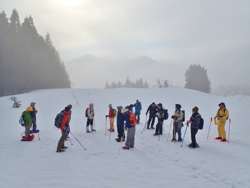 例年に比べて積雪が少なく、加えてツアーの数日前から雨模様となってみたりと天候が心配されましたが、当日は天候に恵まれました。もう少し気温が下がると凍み渡りもできたかと思います(残念!)