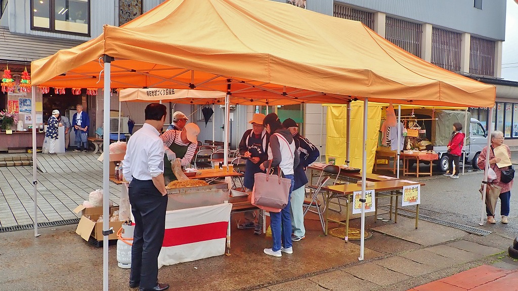 びしゃもん市では名物びしゃもん焼きそば、きのこ汁、栗おこわ、おかこ餅販売などが行われ大変好評でした。