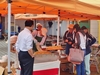 商工会浦佐支部のテントでは炭火焼きのお肉、ホタテ、ウインナーのほか、生ビールやハイボールなどが販売されました。