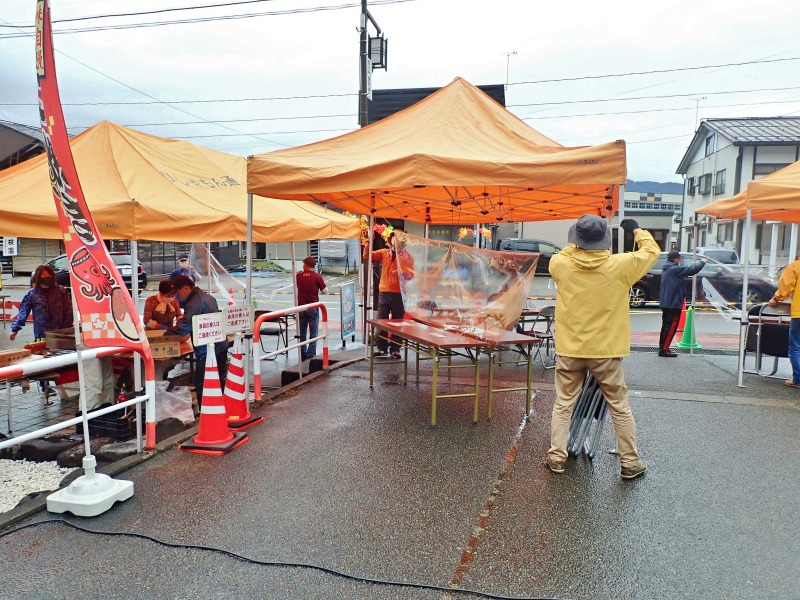 早朝から冷たい雨が降り続く中、3回目となるの縁日準備が始まりました。