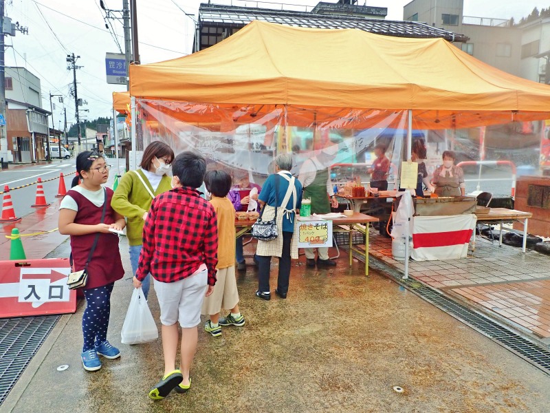 ・びしゃもん焼きそば、おかこ餅、宮内さんの栗おこわと新鮮地場産野菜の販売!